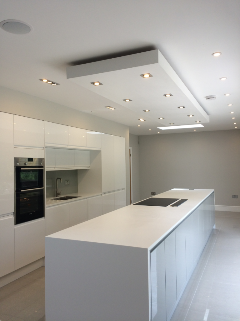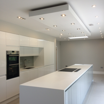 Tę nowoczesną, luksusową kuchnię wykonaliśmy na wymiar z użyciem najwyższej jakości materiałów, takich jak Corian®. Projekt kładzie nacisk na estetykę, funkcjonalność i minimalizm. Jednocześnie oferuje dużo przestrzeni roboczej i praktycznych schowków, co czyni tę kuchnię idealną do codziennego użytku. Wszystko to sprawia, że ta wyjątkowa przestrzeń do gotowania i spożywania posiłków staje się reprezentacyjną częścią domu.