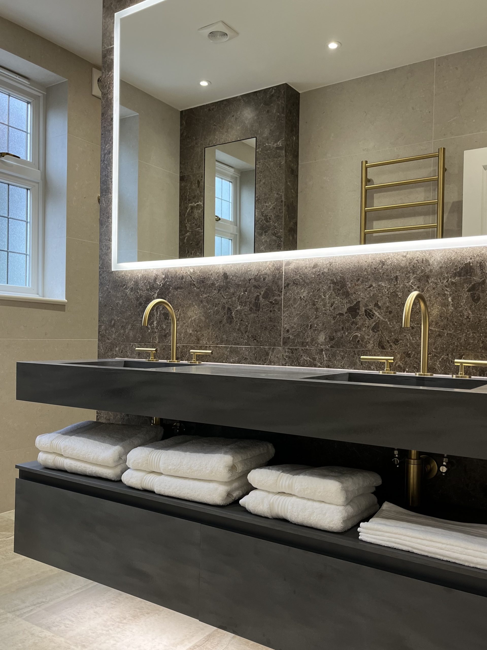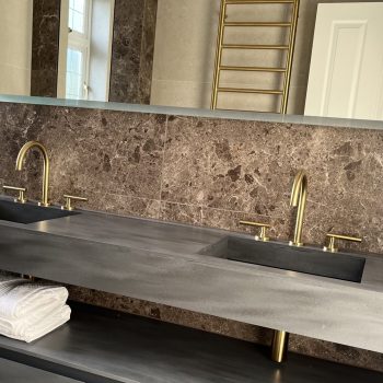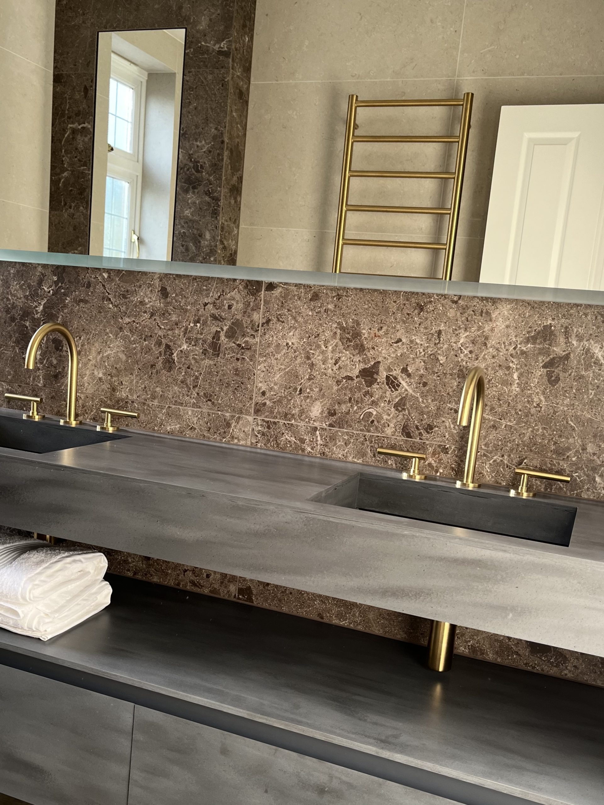 Nasze produkty i materiał Corian® dają tak wiele możliwości! Możesz wybrać spośród wielu kolorów, faktur i kształtów umywalek. Aby jeszcze lepiej połączyć wszystko w jedną, spójną aranżację. Znudził Cię już wszechobecny w łazienkach, biały kolor? Jeśli tak to poznaj naszą realizację, w której króluje modny beż, brąz i ciemna szarość.